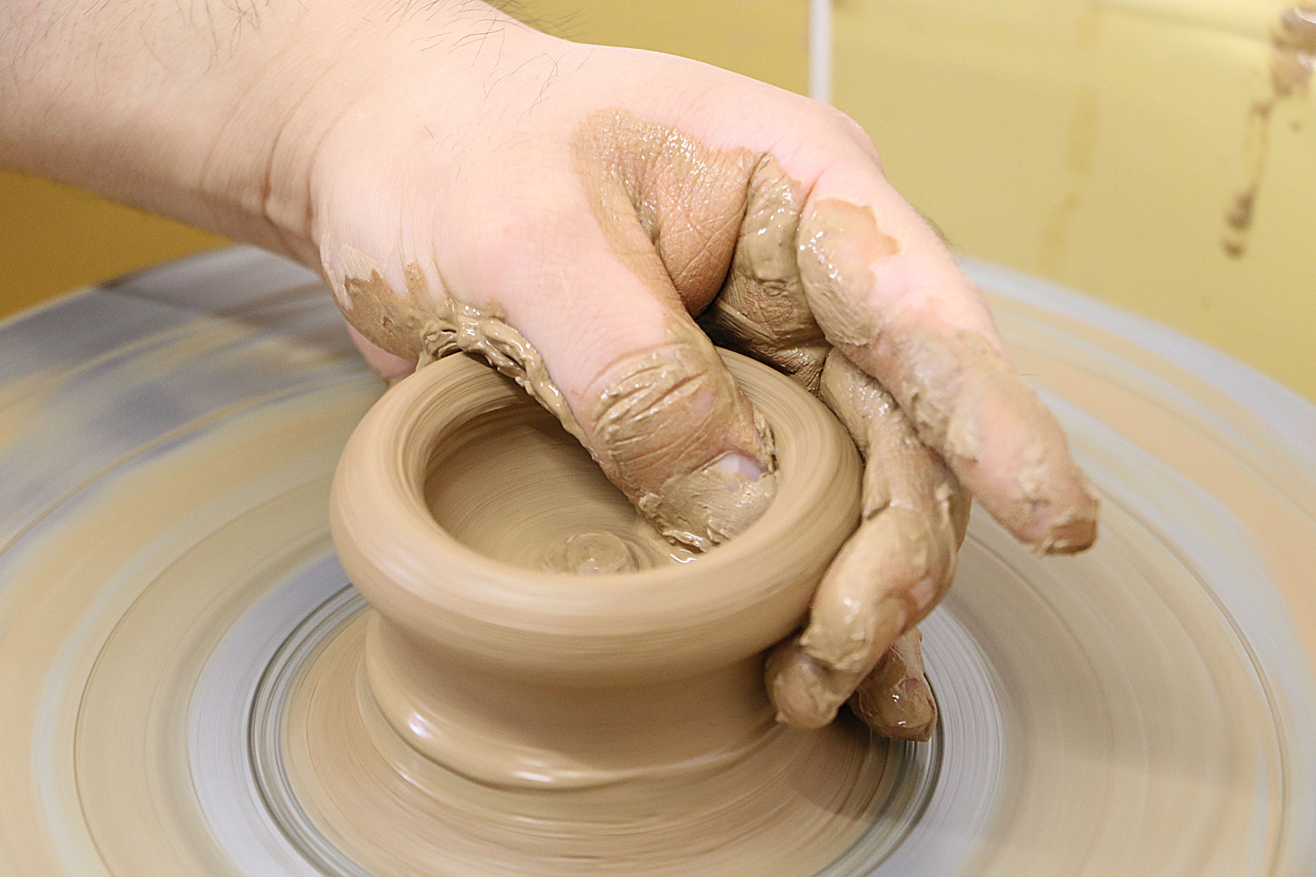 電動・手動の轆轤(ろくろ)など道具を用いて一人一人思い思いの作品を作り上げています。